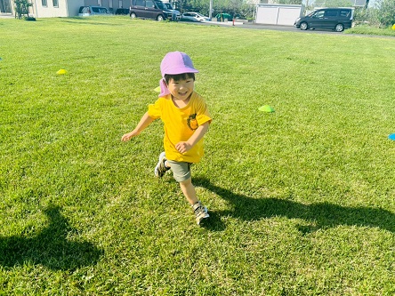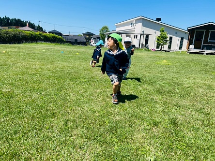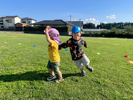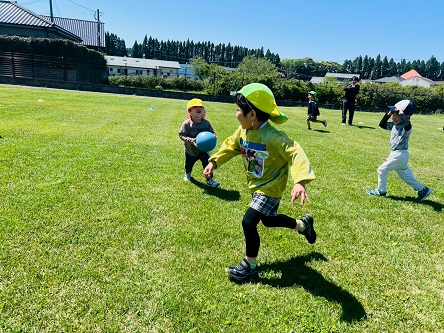 とら・ぞうグループでは、鬼ごっこを行いました! 鬼から逃げようと、コート内を走り回る子どもたち。 鬼も、お友だちを捕まえようと必死に追いかける様子が見られましたよ! 鬼が近付くと、腕を大きく振って走ったり、身体を反らしたりしながら逃げる姿がありました☆ たくさん身体を動かし、汗をかいた子どもたちでした!