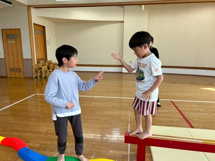 今回は、平均台と平均台ブロックを使って、ドンじゃんけんをしました!