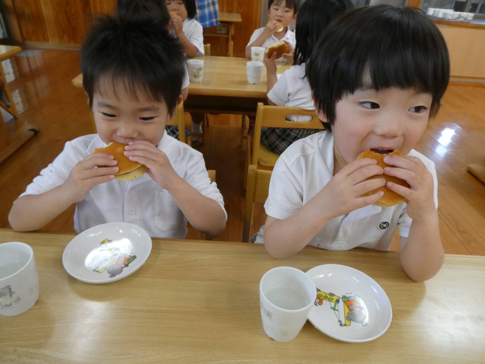 食べている際も、「先生、いっぱい食べるから見ててね。」、「僕は、大きな口で食べられるよ!」と得意気な姿が見られました。