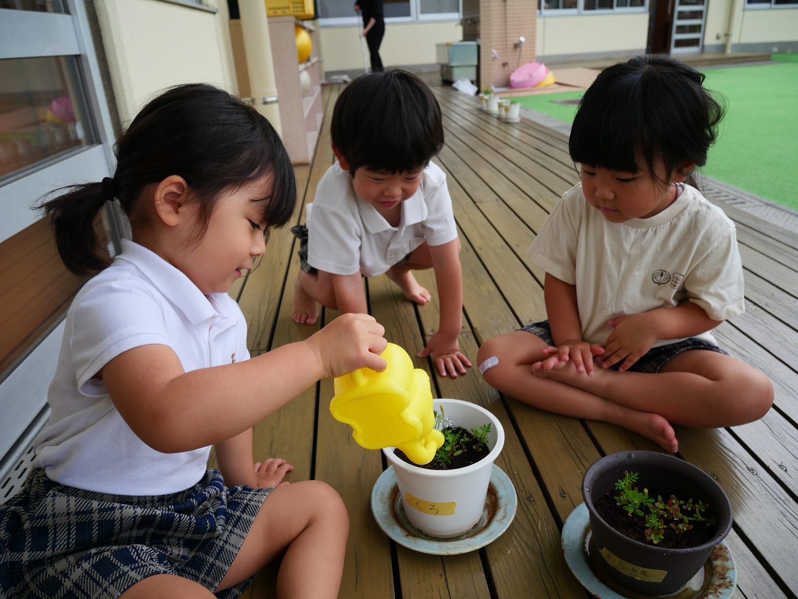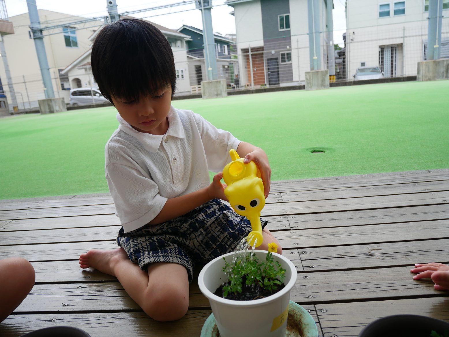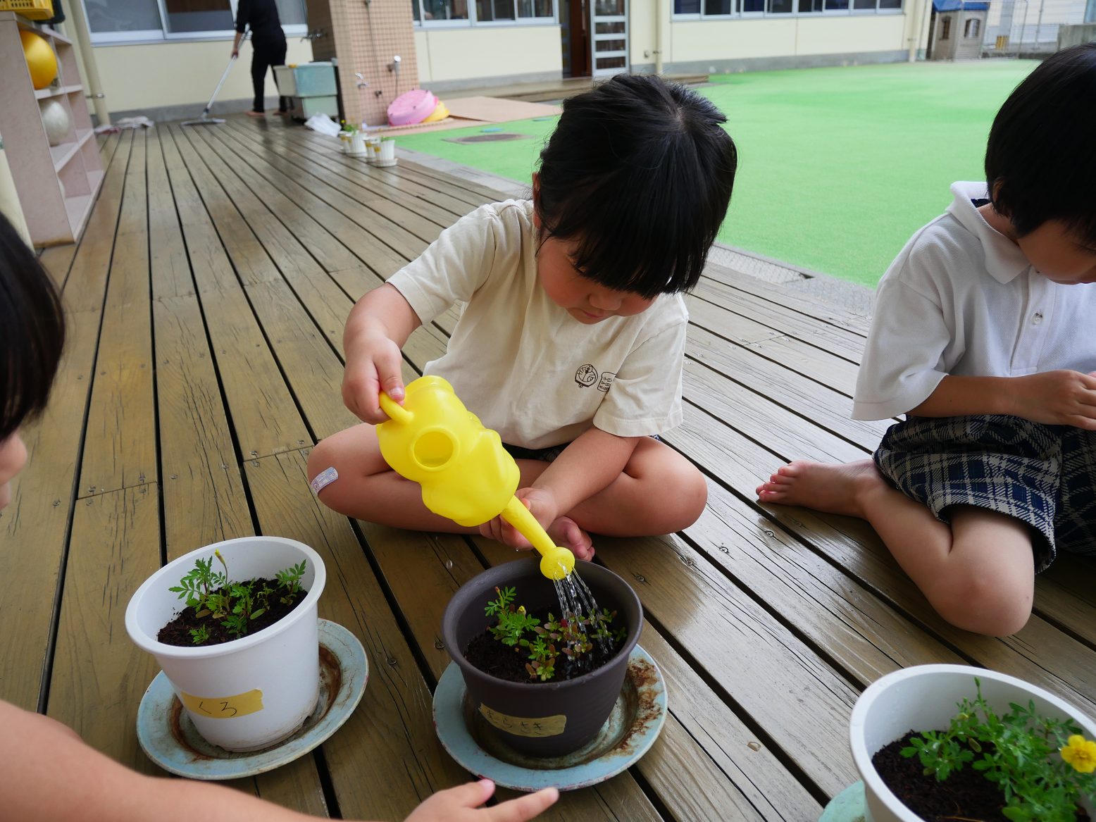 これまで以上に水をあげることが楽しみな様子の子どもたち。全部の鉢からかわいい花がたくさん咲くように、これからも一緒に水やりに励んでいきたいと思います。