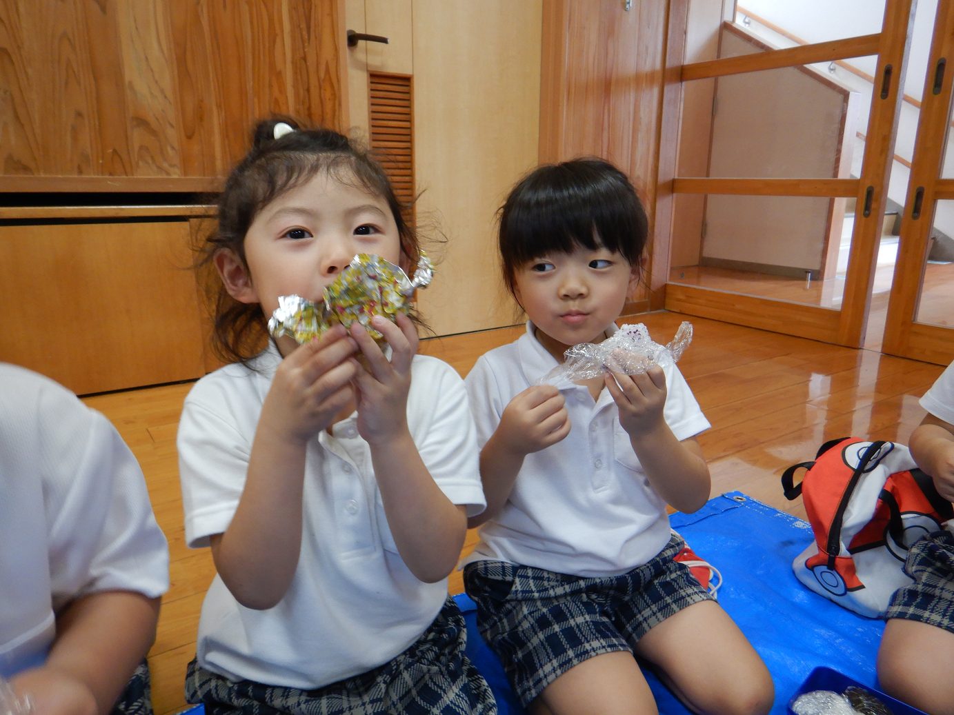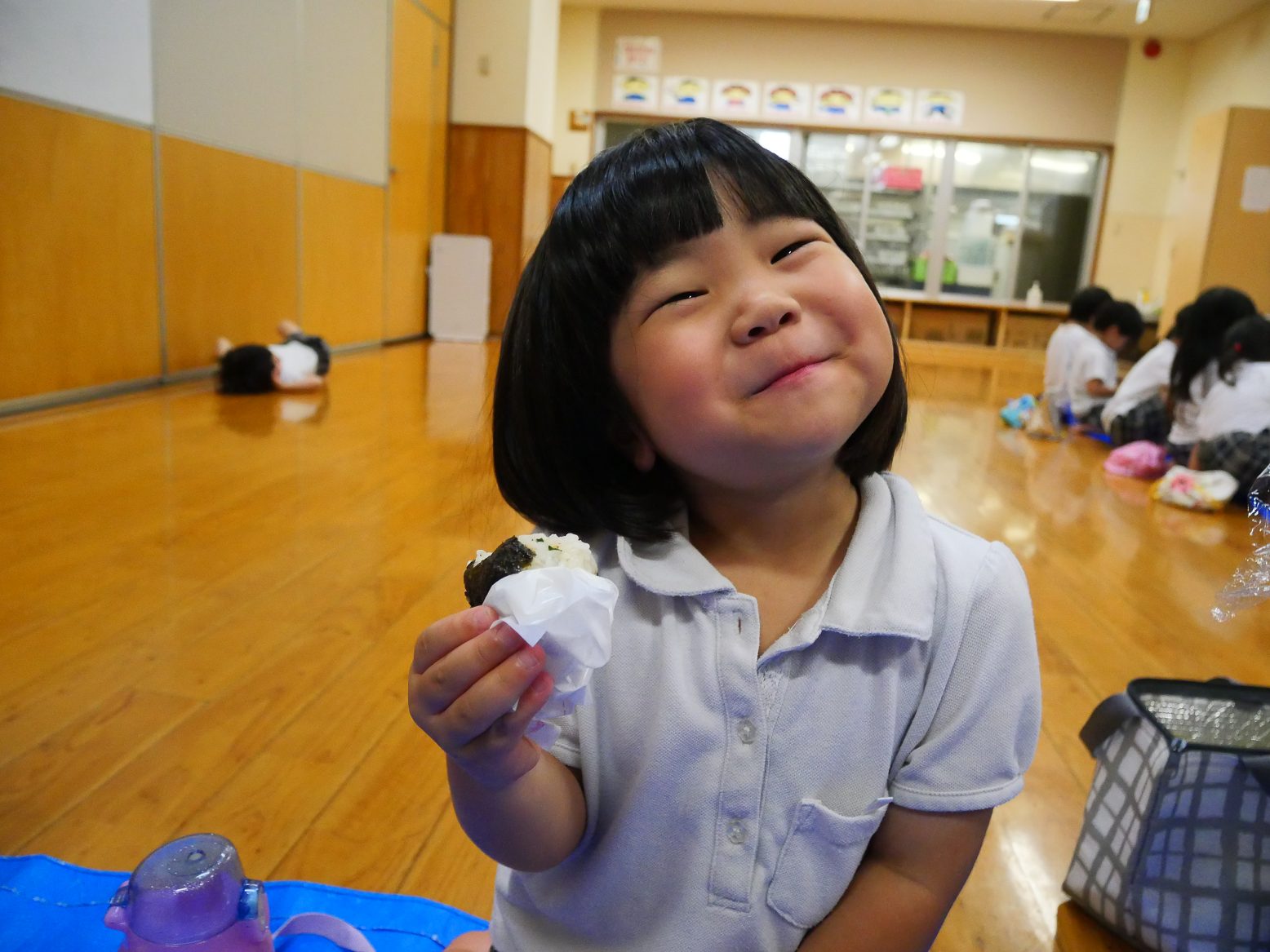 たくさん遊んだらお待ちかねのおにぎりの時間です。おいしいおにぎりを口いっぱいに頬張りながら可愛い笑顔をたくさん見せてくれました。
