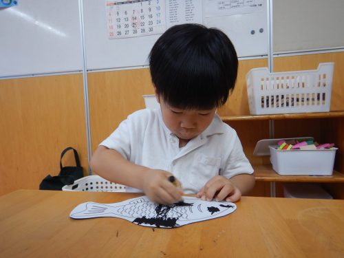 公園に行く予定でしたが、雨のため中止になってしまいました。天気がいい日にまた行く約束をしてまずは魚作りです。