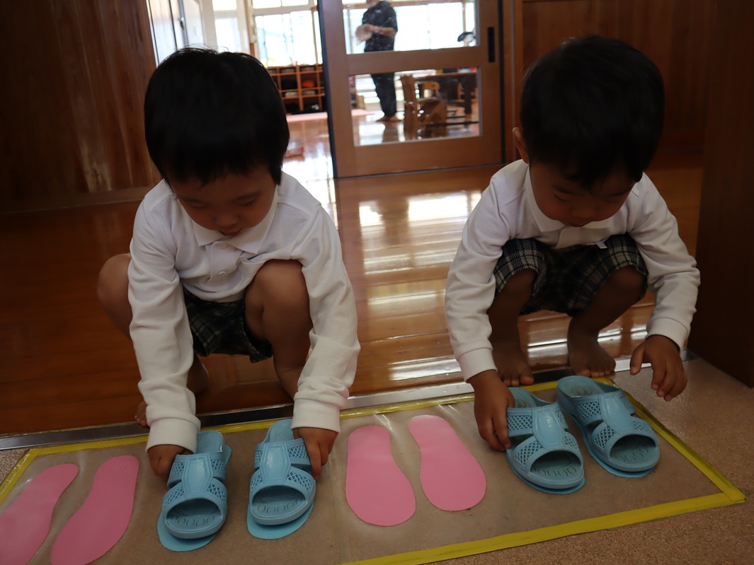 「この黄色の線に並ぶんだよね!」「見て!スリッパ綺麗に並べられるよ。」と嬉しそうに教えてくれた子どもたち。