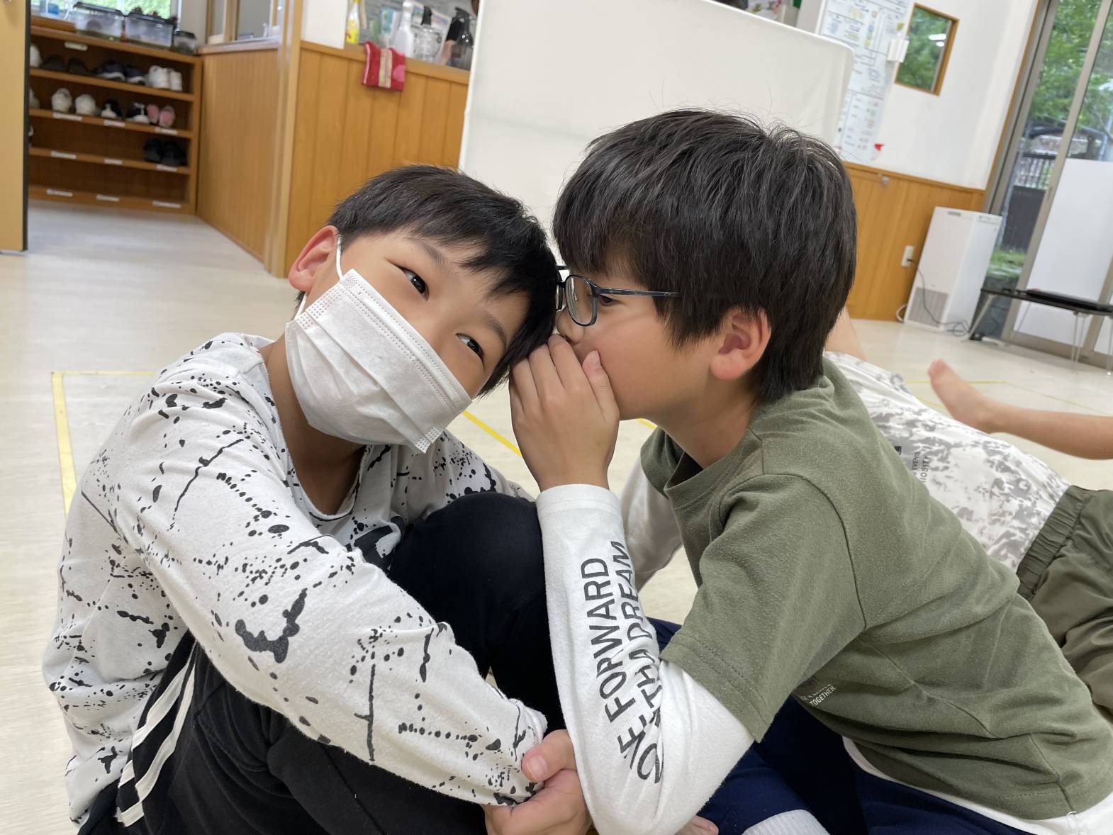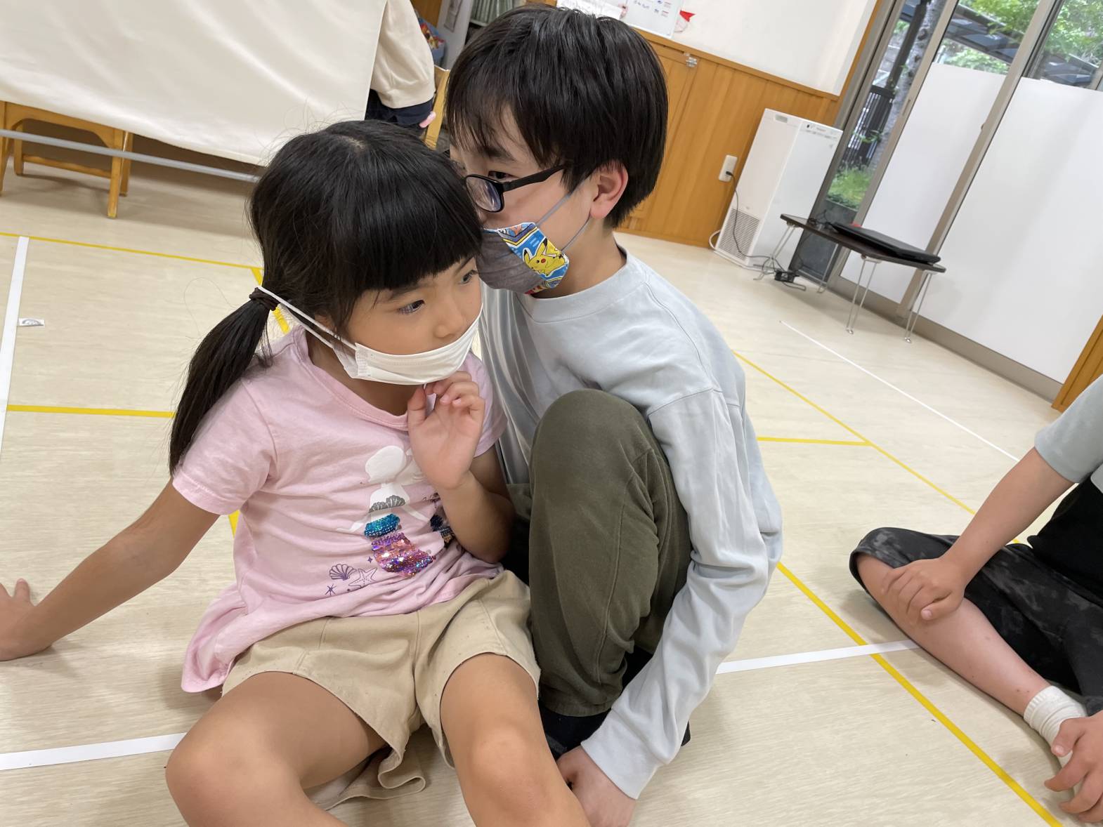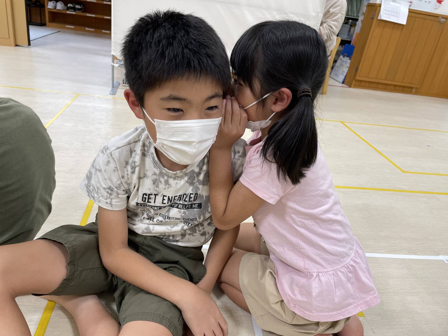 伝言ゲームをしました! 『昨日の天気は雨です』など、お題となる文章を覚えて伝えていきます。 「え、もう1回聞いていい?」、「これでいいのかな。今言ったのであってる?」と聞いた言葉を伝えようとも一度聞き直したり、聞いた言葉があっているか確認したりする姿が見られました。 お友達の言葉を聞いて伝えることに一生懸命取り組む子どもたちでした☆