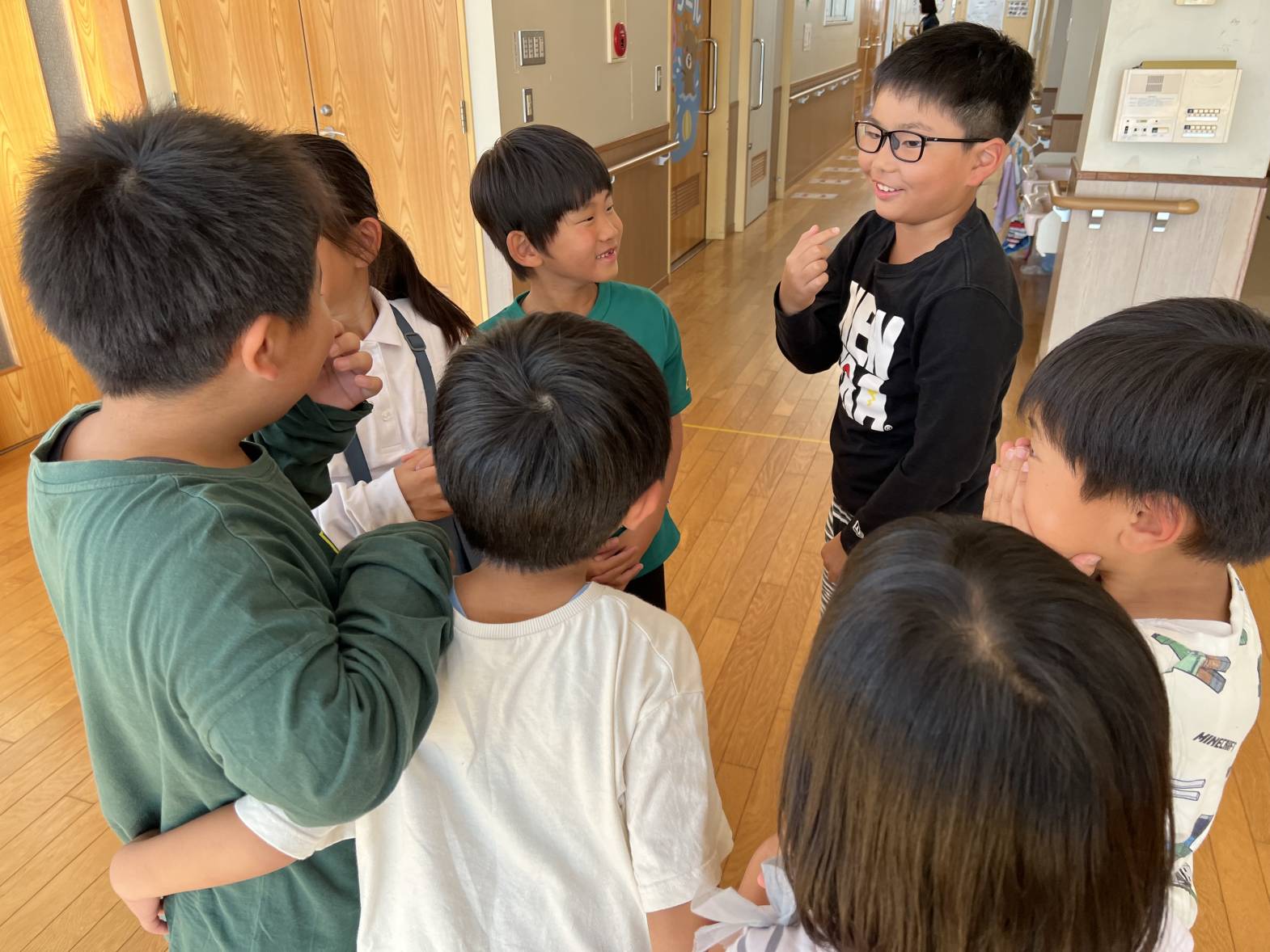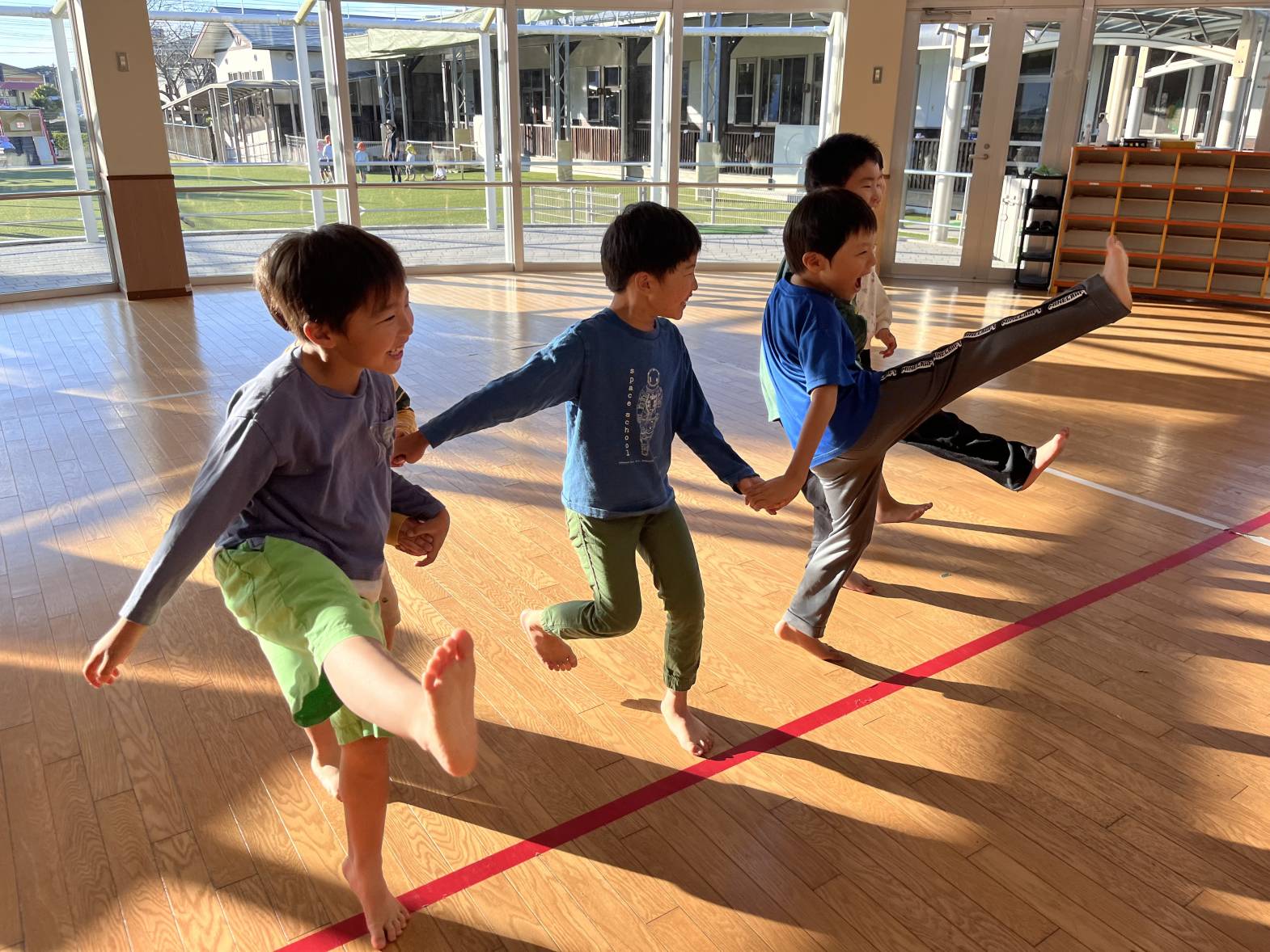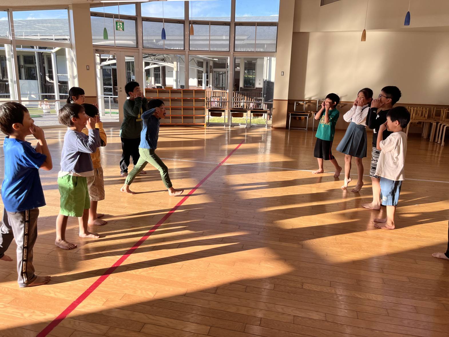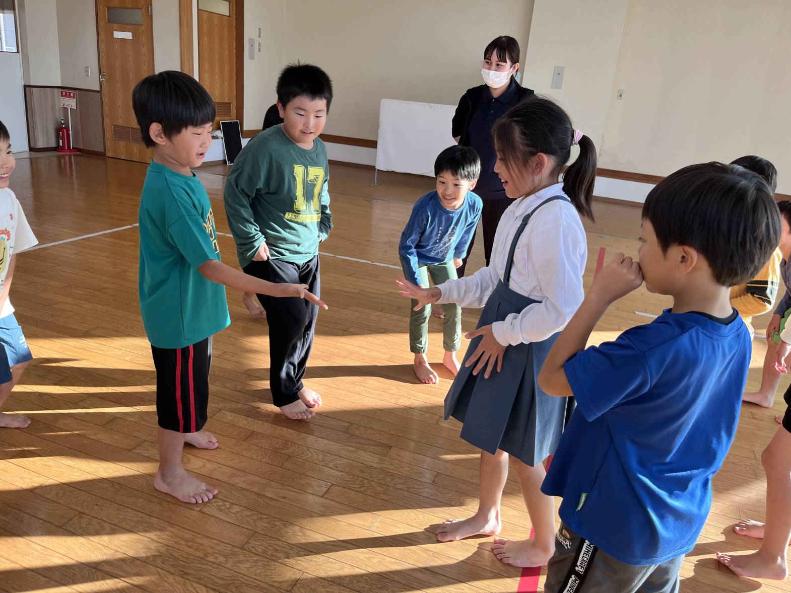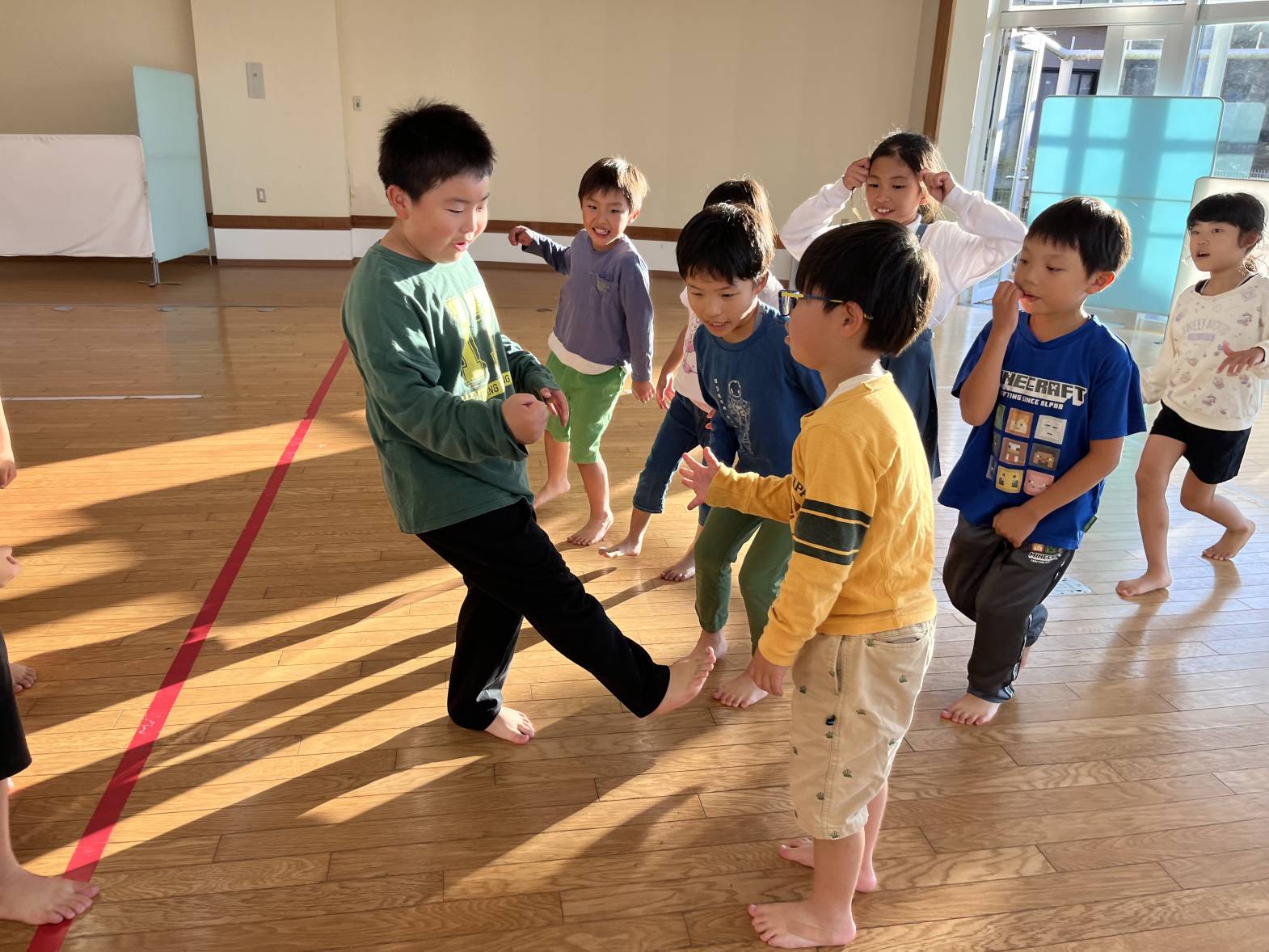 はないちもんめを行いました! ノリノリで歌を歌ったり、お友だちと手を繋いで足を振り上げたりと、のびのび遊ぶ子どもたち☆ 相手チームの中から欲しい人を決める話し合いでは、意見が飛び交い、「最初に取られたお友だちを取り返そう!」などと作戦会議が開かれていました。 指名された子どもたちでじゃんけんです! 周囲のお友だちも興味津々で、勝ったら「よっしゃー!」、負けたら「うわあ~!」と大盛り上がりでした!