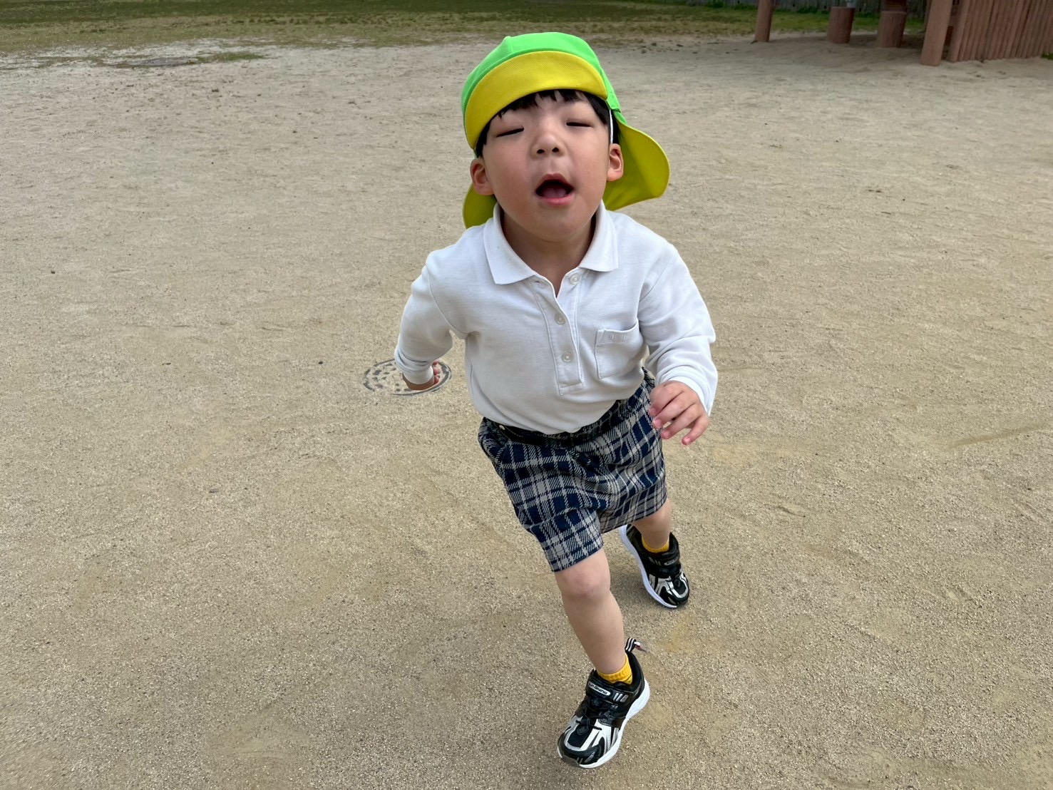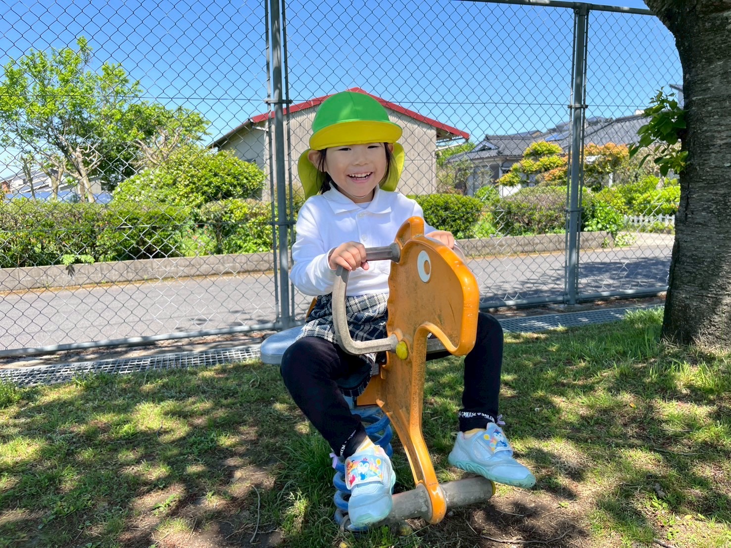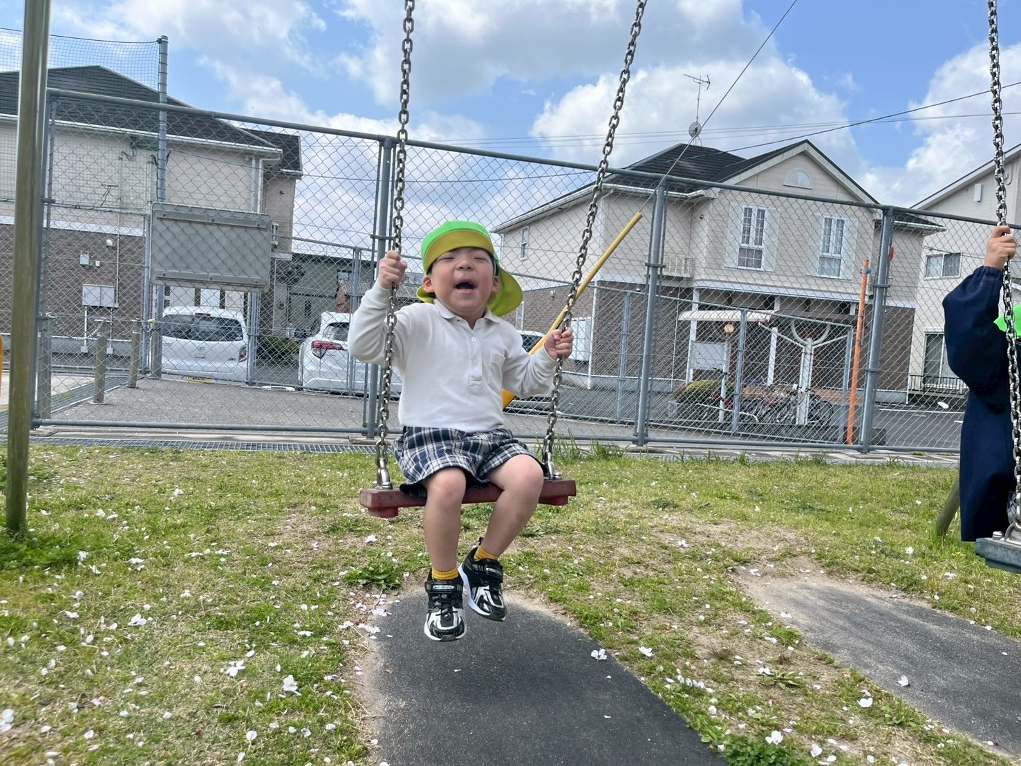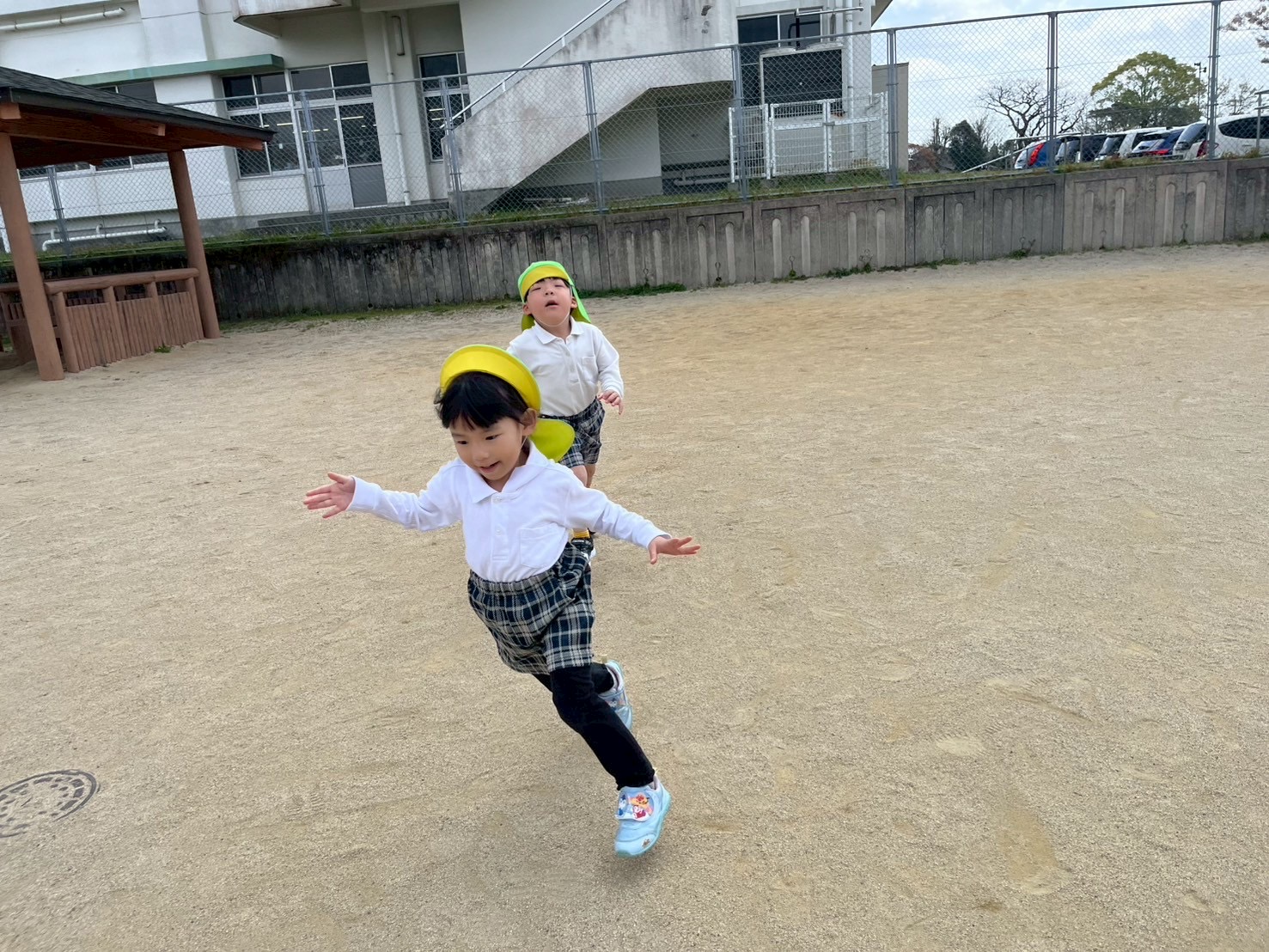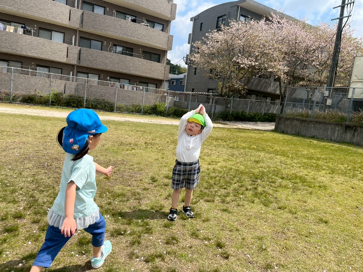 とらグループさんでは、体力向上を目的にさしきばるちびっこ広場に行きました。 公園に 着いてからは、マラソンや氷鬼を行い、体をたくさん動かしています! とらグループさんは、初めての氷鬼でしたが、ルールを理解して取り組むことができていました! その後は、遊具遊びや自由遊びを行っています。 笑顔いっぱいブランコや自然に触れるとらグループさんでした♪