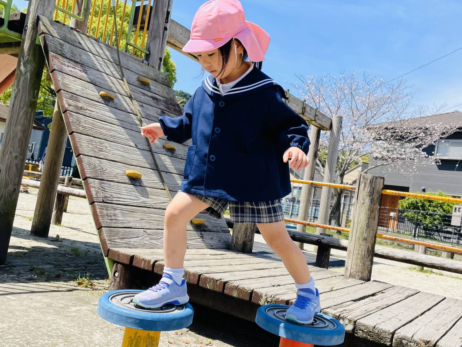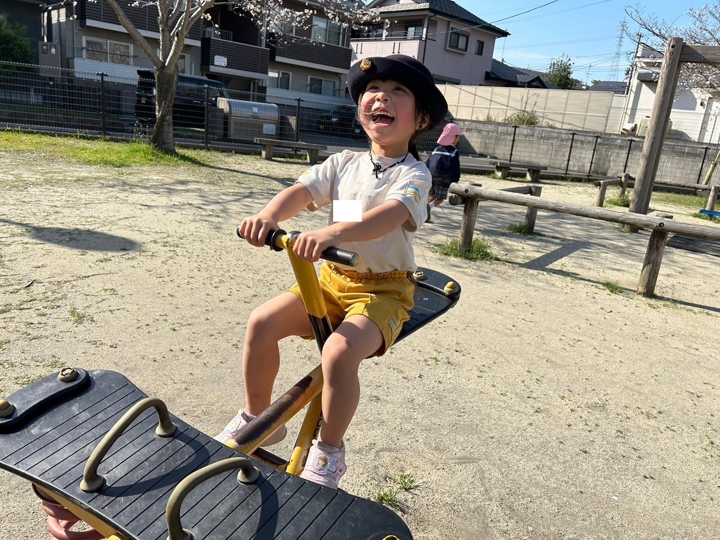 戸外活動で、なかよし公園に歩いて行きました! 「もう少し!」、「最後まで頑張って歩く!」と公園を目指して、安全に気を付けながら元気よく歩く子どもたち。 公園に着くと、色々な遊具を楽しむ姿が見られました♪ 公園からの帰り道も、頑張って歩くぞうグループさんでした!