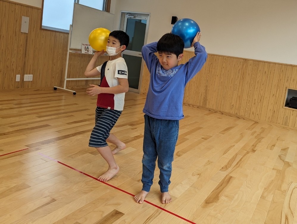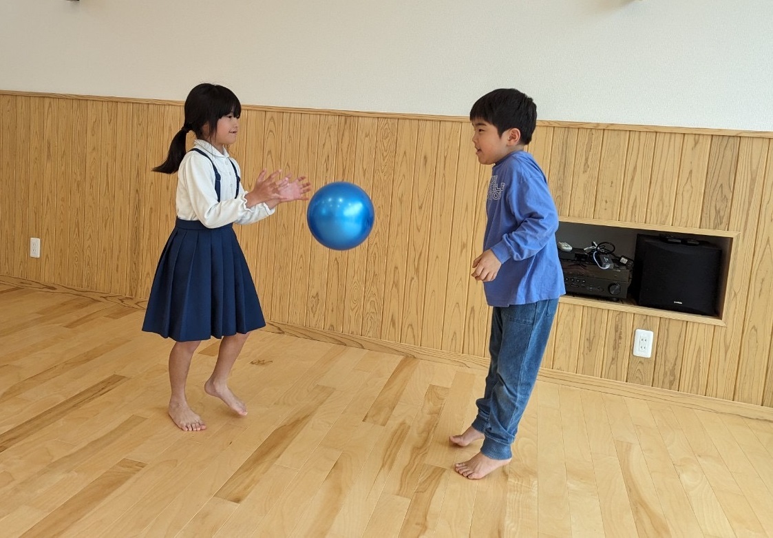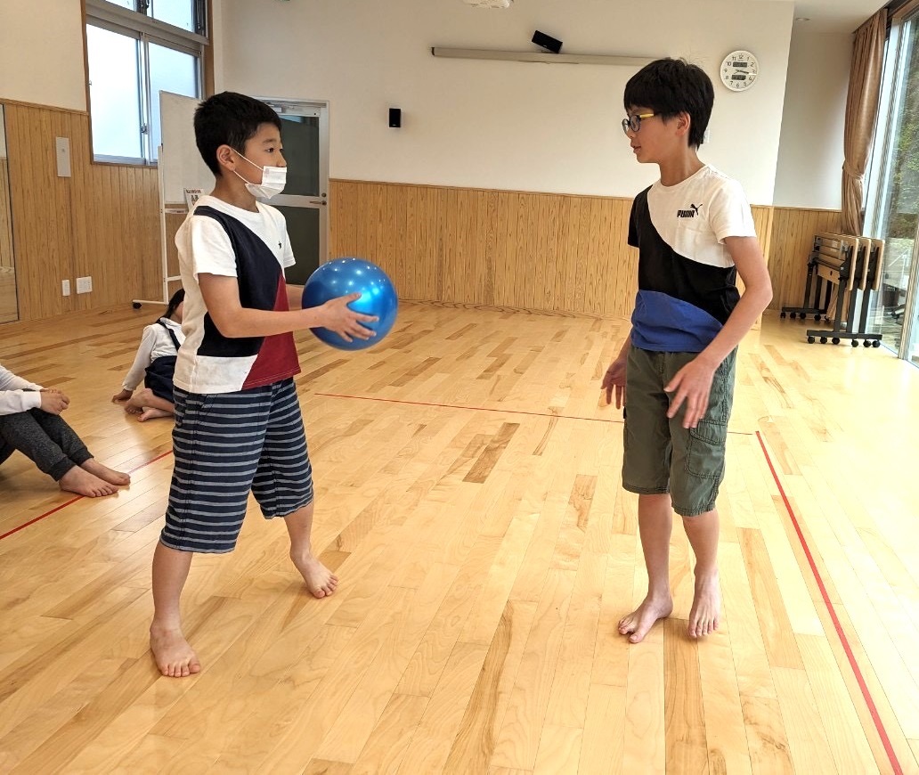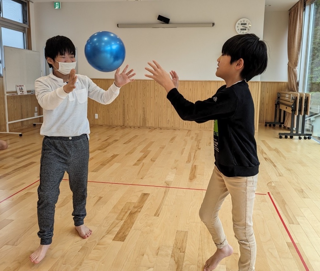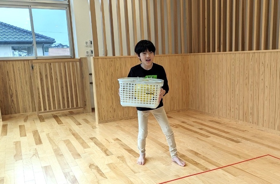 ボール渡しをしました! 最初はお互いに歩きながらボールを渡していきます。相手が取れるように投げる力を調節する姿が見られましたよ。 次は籠に向かってボールを投げます。「いくよ!」、「いいよ!」と声を掛け合いながらタイミングを合わせる子どもたち。 どうやったら落とさず取ったり入れたりすることができるのか話し合いながら楽しむ姿が見られました!