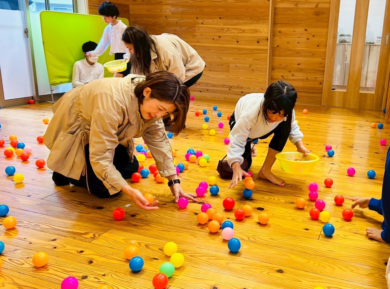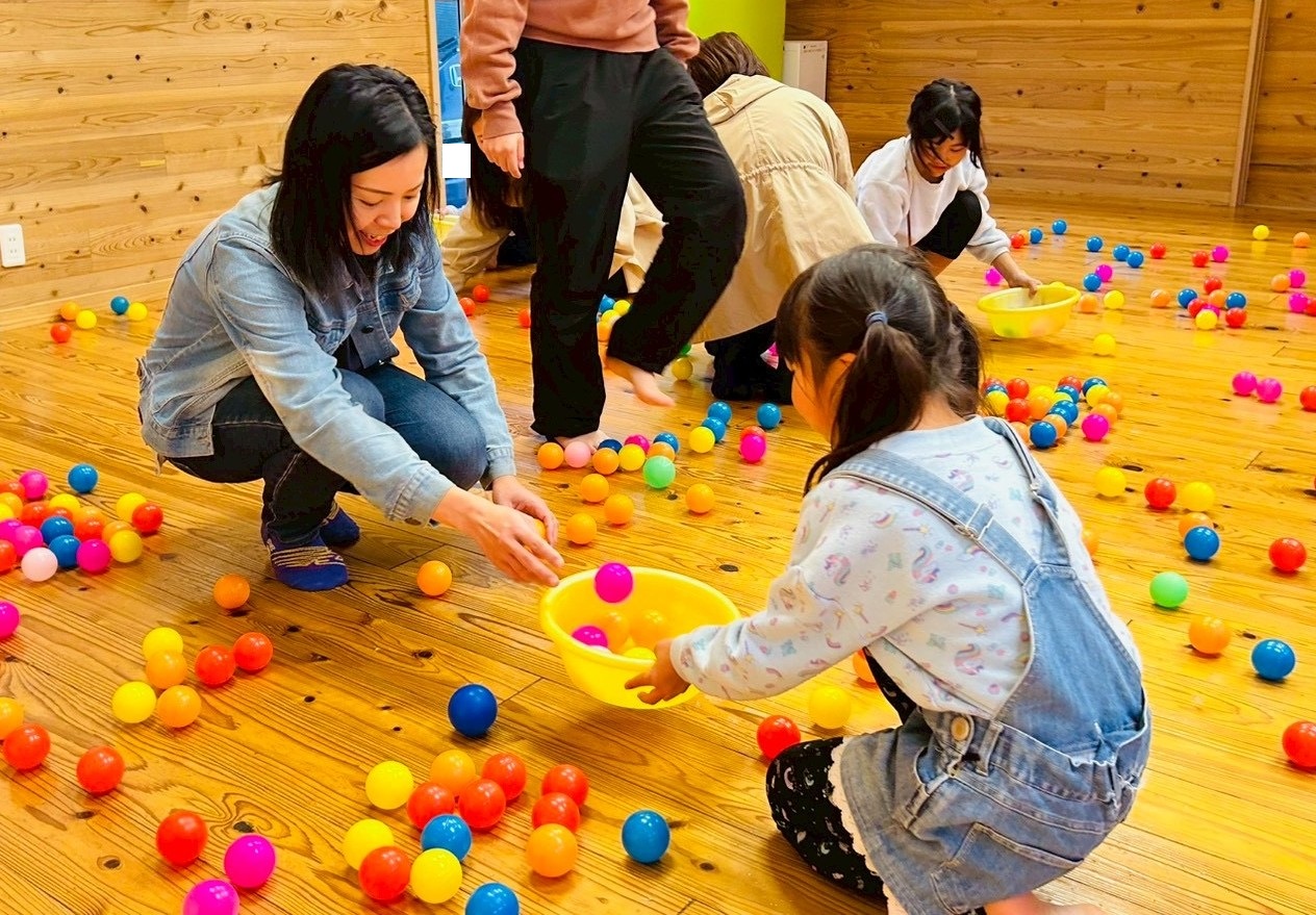 親子活動でレクリエーションゲームを行いました! 親子での島縮みゲームでは、新聞紙が小さくなってくると、片足ずつで乗ったり、おんぶをしたりして、協力する姿がたくさん見られましたよ☆ ボール集めゲームでは、たくさんのカラーボールの中から数字が書かれたボールを見つけ出します。 「あった!」とどんどん見つけていく姿が見られました! 最後はきらら館のクイズゲームを行い、レクリエーションゲームの3本勝負を親子で協力しながら全力で取り組む子どもたちでした☆