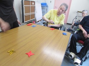 令和2年8月18日(火) この日はチャレンジクラブ②「手裏剣紙コップ」を行いました。 手裏剣でカーリングをするゲームでした! 皆さん集中され、とても真剣です! 「えいっ!」 手裏剣で他の手裏剣を上手くはじけると、嬉しそうに笑顔みられました♪ 上手に腕を使い手裏剣を飛ばされていましたね! またチームで対決したり、レベルを上げたりして次回も楽しみましょうね。